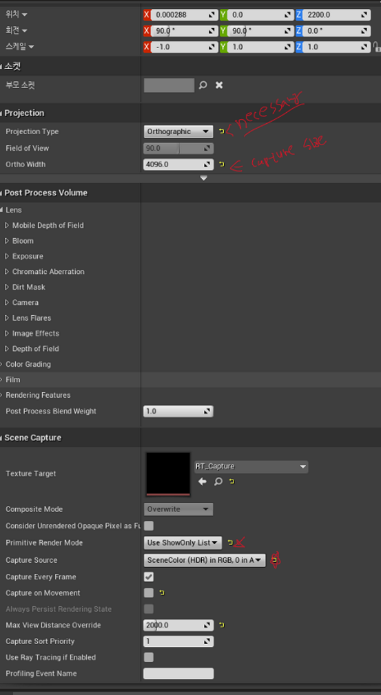 위 그림은 전체적으로 캡쳐와 파티클을 포함하고 있는 액터가 어떤일을 하는지를 보여줍니다.