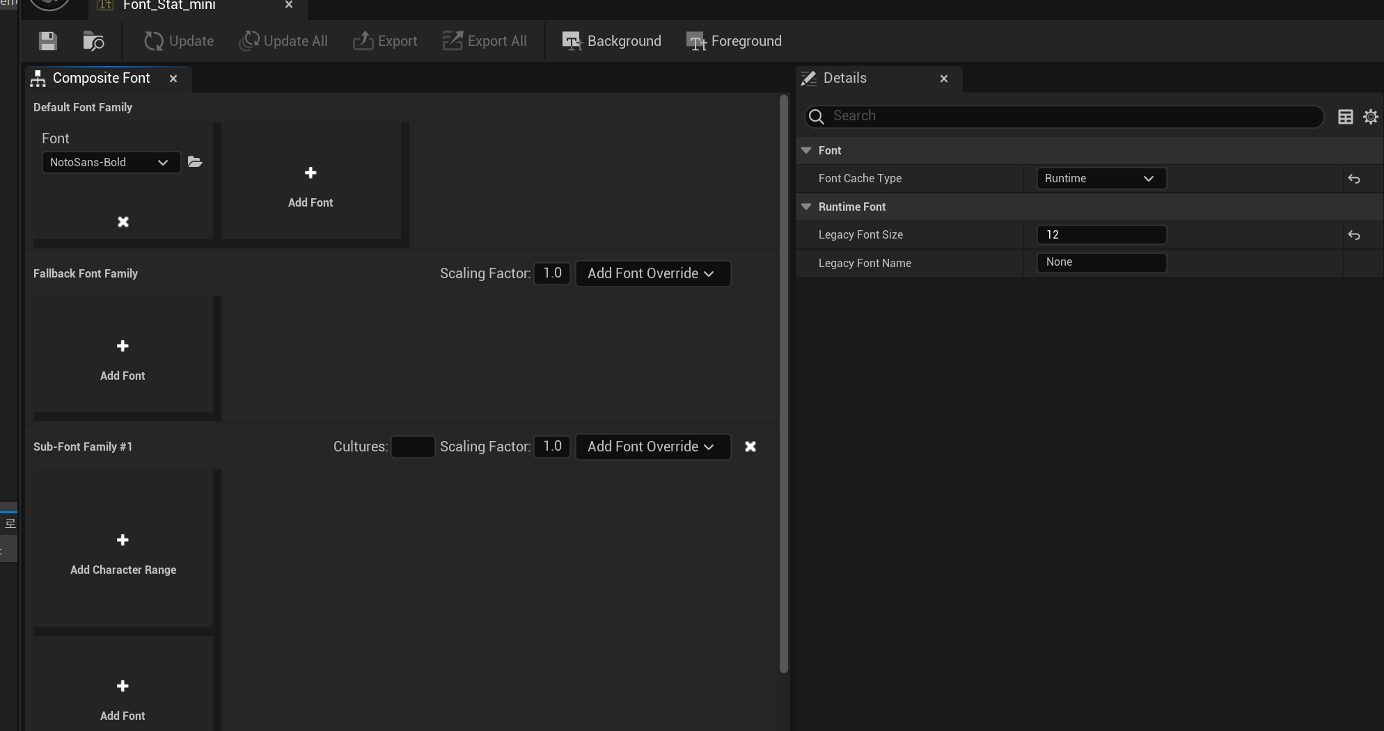 이방법은 실시간으로 수정하거나 변경할 수 없고 엔진에서 사용되는 폰트 사이즈를 고정을 시켜버린다는 단점이 있어