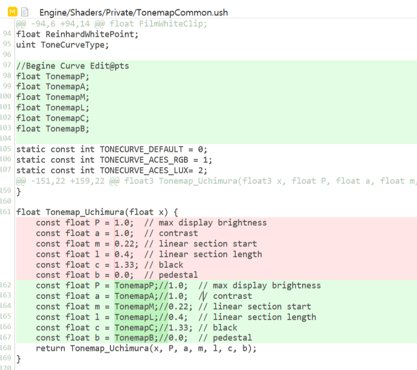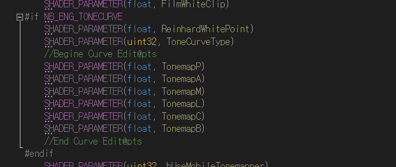 맨위에 tonecurvetype 과 ReinhardWhitePoint 는 사용하는 파라메터 입니다. 추가해 줍시다