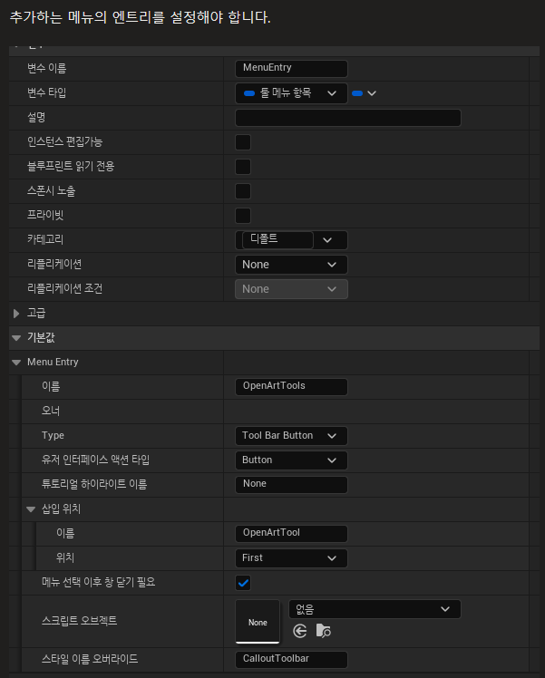 - 에디터 유틸리티 블루프린트의 툴바 개선 기능을 이용해 제작