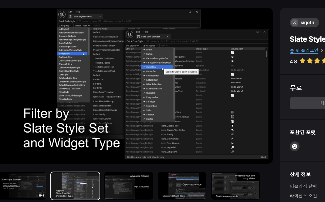 해당 플러그인을 설치하면 엔진에 존재하는 스타일을 찾을 수 있습니다 아이콘 이름도 다 나오므로
