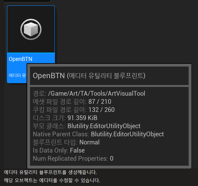 - 에디터 블루프린트 위젯을 실행하는 기능입니다
