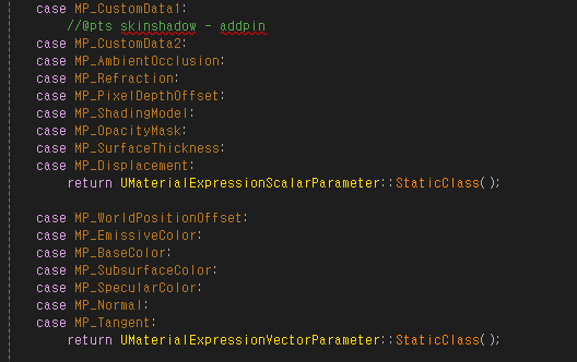 MaterialSourceTemplateParams.Add({ TEXT("get_material_custom_data2"), TEXT("return Parameters.MaterialAttributes.SkinShadow") });