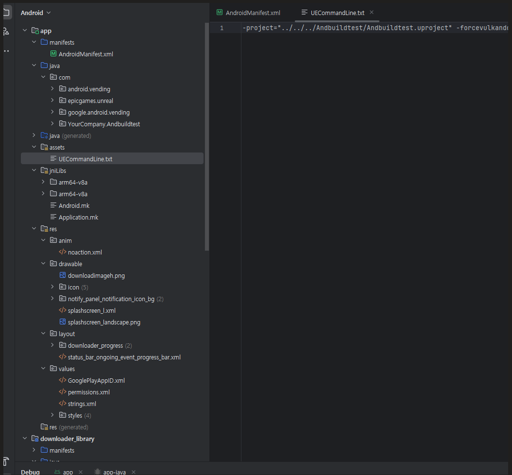 - UECommandLine.txt 파일 생성 - 어느곳이든 상관이 없음 디바이스 내에서는 생성하기 어려우니 윈도우에서 생성